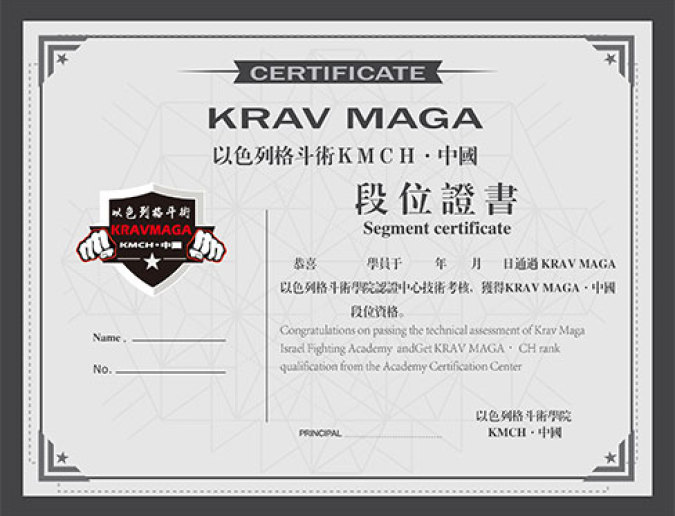 以色列格斗術采用了初級和中級兩個段位進階晉級級別考核體系,并設有師范級高級段位,成功通過考核將獲得相應的段位證書。